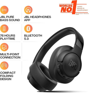 JBL Tune 720BT Wireless Over-Ear Headphones, with JBL Pure Bass Sound, Bluetooth 5.3, Hands-Free Calls, Audio Cable and 76-Hour Battery Life, Black