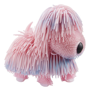 - This adorable pup is soft to touch with stretchy rubbery face and body.