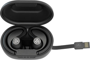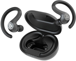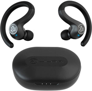Stream workout playlists with these sweat-resistant JLab JBuds Air Sport true wireless earbuds. Over-ear hooks provide a secure fit, and the charging case packs 34 hours of battery life for extended playback during training marathons. Take clear, hands-free calls during workouts out via the dual microphones of these JLab JBuds Air Sport true wireless earbuds.