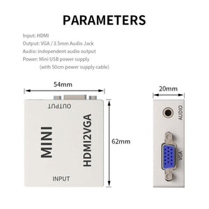 JSM Mini Size HD 1080P HDMI to VGA Audio Video Digital Converter Adapter