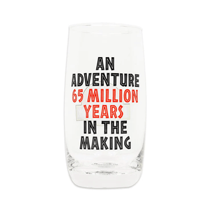 (Jurassic Park) Glass 450ml, one side Jurassic Park logo and the other side AN ADVENTURE 65 MILLION YEARS IN THE MAKING. Sizes: 8x11 cm. Dishwasher not safe.