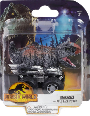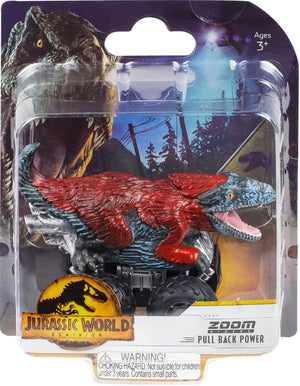 - Jurassic World Dominion Edition Zoom Riders are specially detailed pull-back powered cars.
