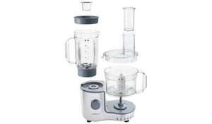 This compact traditional food processor offers an ideal solution for those who are looking to prepare smaller quantities. Complete with a fully calibrated liquidiser, quality stainless steel blades, slicing/shredding plates and a full volume whisk.