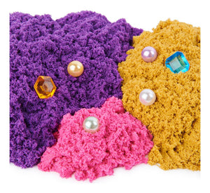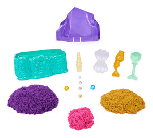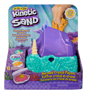 • KINETIC SAND MERMAID CRYSTAL PLAYSET: Uncover mermaid treasure with this playset. Featuring shimmer sand, tools and a reusable crystal container storage for easy clean-up