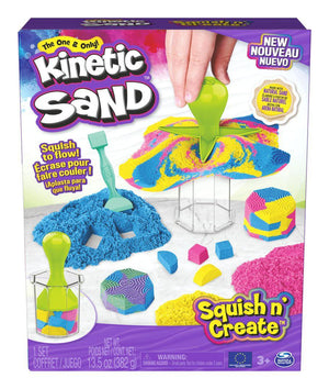 • SQUISH AND CREATE SURPRISE DESIGNS: There’s so many ways to play with the Squish N’ Create Playset. Fill the octagon mould, layer sand, squish it, slice it and more. Reveal a new design each time