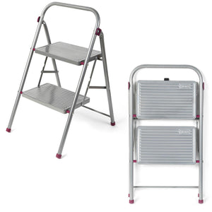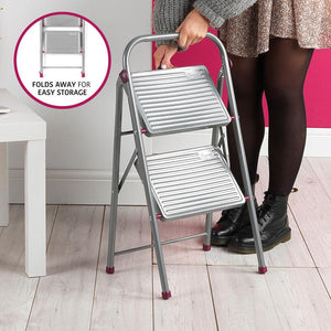 Kleeneze 2-Step Folding DIY Stepladder, Portable Ladder with Non-Slip Feet, Collapsible for Compact Storage, Lightweight Steps, Strong Steel Structure with Safety Clip, 150kg Capacity, 80cm