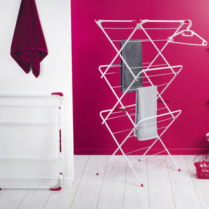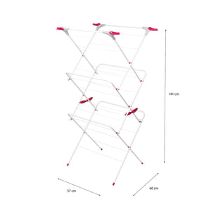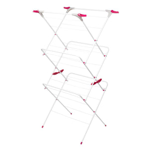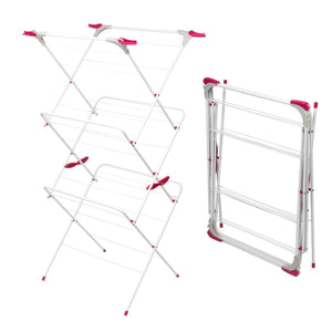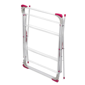 Kleeneze 3-Tier Clothes Airer – Large Foldable Clothes Maiden, Standing Laundry Dryer Rail Rack, Folding Indoor Clothes Horse, 15M Drying Space, Fold-Out Hooks, 7kg Capacity, Pink