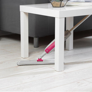 Keep your floors clean and fresh with this Kleeneze Spray Mop, treated with Zinc Pyrithione to eliminate bacteria build-up and nasty smells. Simply fill the 300 ml cartridge and use the spray function to add water to the mop for a thorough clean without hassle. The mop is lightweight but durable, with an aluminium pole and ergonomic handle for added user comfort, while its microfiber mop head pad locks in dirt and grime effectively, leaving your floors brilliantly clean with a sparkling shine.