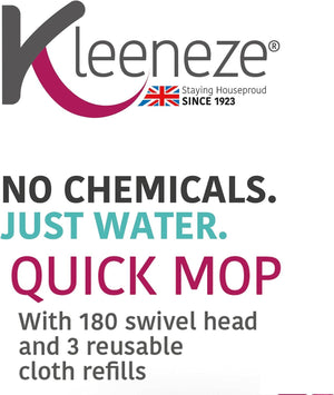Kleeneze No Chemical Cleaning Cloth Mop - Just Use Water, Dual Function 180° Swivel Head, Includes 3 Microfibre Refill Cloths, 1.3m Handle, Use Wet Or Dry On Hard Floors, Machine Washable
