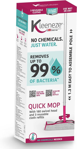 - Keep your floors sparkling with this Cloth Mop by Kleeneze, ideal for cleaning your floors with just water, no need for chemicals.