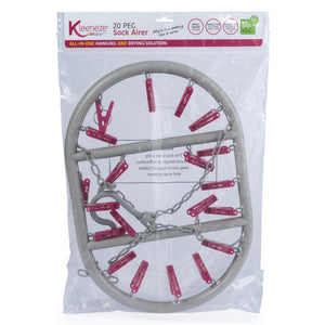 The Kleeneze sock airer is an efficient and space-saving solution for drying small items like socks and underwear, without taking up space on your washing line or clothes airer. Made with a sturdy oval design, this drying rack has 20 easy-open peg clips. It's perfect for use both indoors and outdoors. Say goodbye to cluttered drying spaces, this lightweight airer is perfect for delicate items, homes with limited storage space and can be used when travelling.