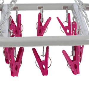 - With 20 pegs attached, they are easy to open and have a strong grip perfect for windy days so your laundry won’t fly away.
