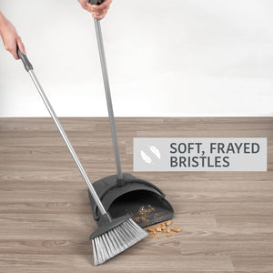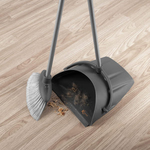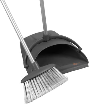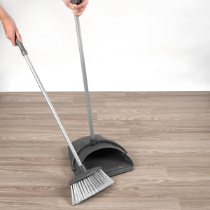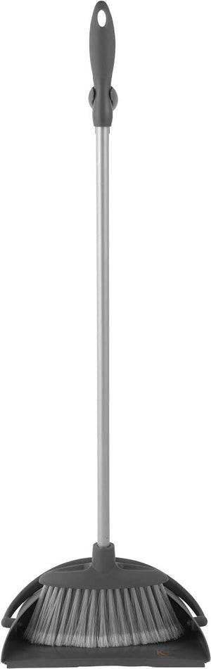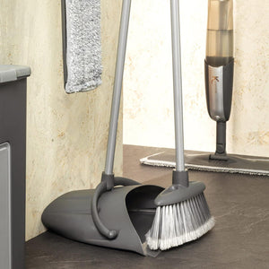 - With a modern grey design, this dustpan and broom set is perfect in any home and features a compact design for simple storage.