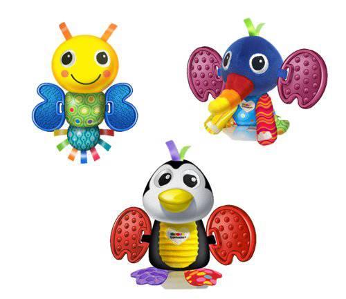 Easy for baby to grasp, the mini teethers have soft plush bodies with crinkles, rattles and squeakers, along with textured teether wings or ears. Bright colours, multiple textures and satin ribbons encourage baby to explore.