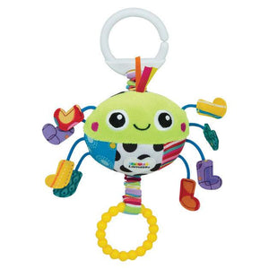 - Featuring eight colourful, dangling feet that dance about as he jingles with a gentle shake.