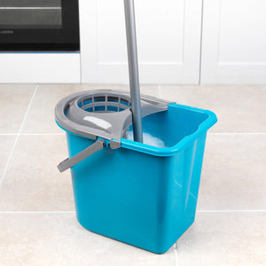 Make mopping the floor an effortless task with this Beldray mop bucket. The vibrant turquoise design will brighten up your cleaning cupboard instantly and is the perfect partner to any mop. The fantastic wringer guarantees superb cleaning – finish the job in half the time with less effort needed to wring out excess water. With a generous 14 litre capacity, the bucket is deep enough to hold plenty of water and built with lightweight plastic so there is no added weight when carrying a bucketful.