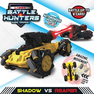 Get ready for the next generation of radio-controlled combat vehicles – Laser Battle Hunters! These full function radio control (Frequency: 2.4 GHz) vehicles enable you to move forward, reverse, spin and turn at super-fast speeds. The innovative multi-directional 4-wheel driving system gives crazy drifting and incredible side to side manoeuvring so you can out outlast and out blast your opponent.