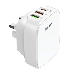 LDNIO 32W Type-C + Dual USB Port Charger with 1m Micro USB Data Cable, Plug Type:UK Plug (White)