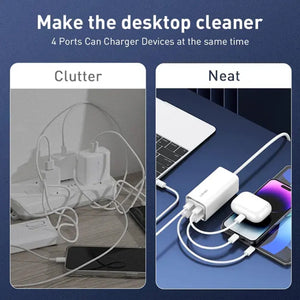 Multiple Ports: Equipped with four ports—two USB-C (Type-C) and two USB-A—allowing simultaneous charging of multiple devices.