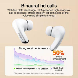 Lenovo LP5 Bluetooth 5.0 Intelligent Noise Reduction Wireless Bluetooth Earphone, STK Version (White)