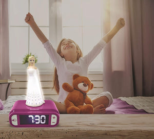 - An alarm clock with a wonderful Elsa lighting up for a few minutes when your press on it.