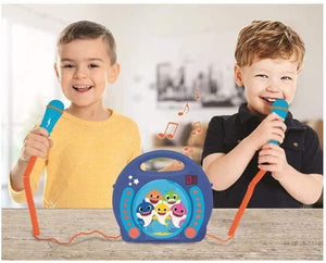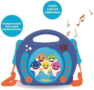 Lexibook Pinkfong Baby Shark Nickelodeon Karaoke CD Player with 2 Microphones, Programming Function, Headphones Jack, for Kids, with Power Supply or Batteries