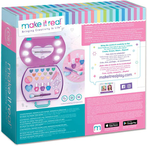 This glam heart-shaped case features an illuminated mirror and all the fun dress-up cosmetics needed to create bright, picture-perfect manis and matching makeup looks.