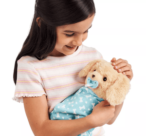 Charlie comes with a soft blanket, a pacifier, an instruction booklet, and batteries are included so that you can play with Charlie straight away!