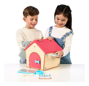 Now your child can make a home that is truly magical! Little Live Pets - My Puppy's Home allows kids to build a house that when complete delivers the cutest surprise in the form of an adorable pet puppy! My Puppy's Home comes as a flat pack with all the tools and parts your child needs to construct a cute little doghouse. After the walls and roof are put together, it's time to lay out the welcome mat and fill their puppy's water bowl. Kids will be amazed when they see cute little paw prints magically appear on the mat! Wow! It looks like someone has just arrived! There's just a couple more things to do - name your puppy and attach their name plate to the kennel. Now it's time for the real surprise to happen. What's that sound coming from inside? Open the door! Wow! A cute pet puppy has appeared from nowhere for your child to adore! Which pup will they get? Will they be brown or blonde? This sweet little dog is so playful and interactive with more than 25 sounds and reactions. They even come with a toy bone for them to chew and play with! The electronic puppy reacts to your child's touch just like a real pet. My Puppy's Home even comes with an adoption certificate that can be filled in. Children can repeat the magical arrival again and again. Part construction toy, part surprise unboxing, part cuddly interactive plush, kids will love My Puppy's Home as they prepare the perfect home for a puppy to call their own.