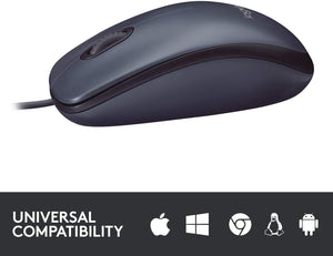 Logitech B100 Wired USB Mouse, 3-Buttons, 1000dpi and Optical Tracking, Ambidextrous Design for PC, Mac and Laptop, Black