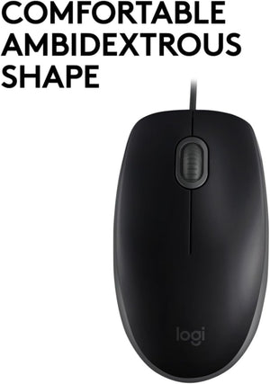 Logitech B110 Wired USB Mouse, Silent Buttons, Comfortable Full-Size Use Design, Ambidextrous PC / Mac / Laptop - Grey