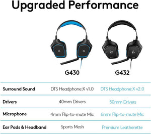 Logitech G432 Wired Gaming Headset, 7.1 Surround Sound, DTS Headphone:X 2.0, 50 mm Audio Drivers, USB and 3.5 mm Audio Jack, Flip-to-Mute Mic, Lightweight, PC/Mac/Xbox One/PS4/Nintendo Switch - Black