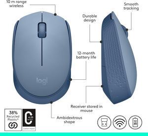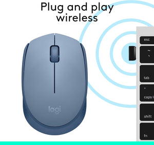 Logitech M171 Wireless Mouse for PC, Mac, Laptop, 2.4 GHz with USB Mini Receiver, Optical Tracking, 12-Months Battery Life, Ambidextrous - Blue Grey
