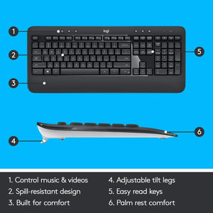 Logitech MK540 Advanced Wireless Keyboard and Mouse Combo for Windows, 2.4 GHz Unifying USB-Receiver, Multimedia Hotkeys, 3-Year Battery Life, for PC, Laptop, QWERTY UK Layout, Black