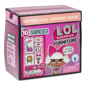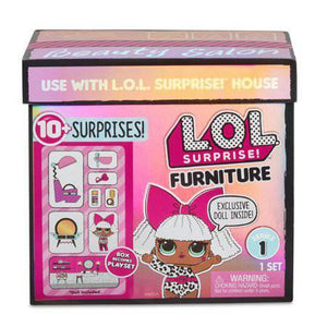 Unbox 10+ surprises including furniture for your L. O. L. Surprise! House with L. O. L. Surprise! Furniture. The Salon pack includes a rereleased Series 1 character Diva, along with a salon chair, fabulous vanity and beauty accessories perfect for treating L. O. L. Surprise! dolls to a makeover. The box folds out to become a fabulous salon playset, where Diva can get ready to take the stage. Collect all 4 styles to glam up the life of your L. O. L. Surprise! dolls with L. O. L. Surprise! Furniture.