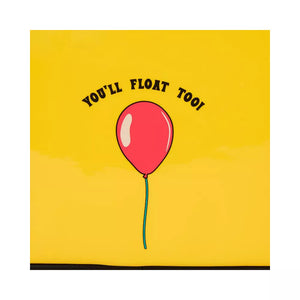 Explore creepy tunnels in style—and in wickedly fun company. Bring along this mini backpack featuring Pennywise from IT. A faux patent leather material in yellow adds a rain-slicker shine to this accessory. The front pocket has real buttons and cords for a cosplay effect. Above the front pocket, Pennywise’s face appears—and it glows in the dark. You might also be able to spot an applique of Georgie’s paper boat. Flip the backpack around, and you’ll find the words “You’ll Float Too.” Sail through your day with a monstrously stylish accessory.