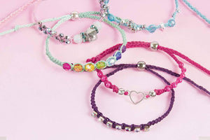 Learn simple knotting techniques to create five beautifully styled bracelets using this comprehensive kit’s mix-and-match waxed cord and trendy beads.