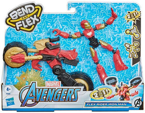- BEND! FLEX! Epic fun with both Flex Rider Iron Man and his flexible motorcycle that can morph into a backpack of high-tech weapons! This 6-inch Bend and Flex figure has bendable arms and legs that can be twisted and flexed into tons of imaginative poses!