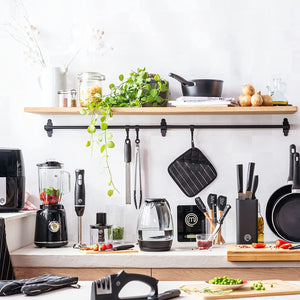 The MasterChef stick blender is a household necessity for casual and professional chefs alike. Official product of the famous TV series MasterChef, the stick blender includes two blending speeds and a removable, stainless steel base for durable performance and easy cleaning. In addition, the MasterChef stick blender comes with a handy 700ml measuring cup, a whisk and a chopper bowl for all your cooking needs. Bon Appetit!