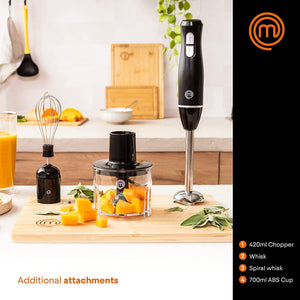 MasterChef Stick Blender set, including measuring cup, whisk and chopper bowl