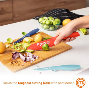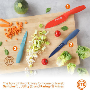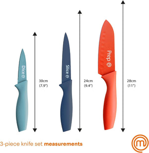 MasterChef Knife Set of 3 Kitchen Knives for Cooking (Chef, Paring & Utility), Professional Sharp Stainless Steel, Non Stick Blades & Soft Touch Handles, Easy Grip, Vivid Collection, 3 Piece