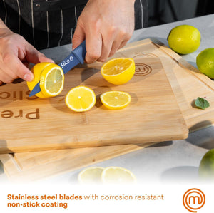All of MasterChef's caption collection knives are coated in a protective non-stick covering to prevent scratching and damage during storage/transit. Fitted with hand sharpened, stainless steel blades, our knives are designed to glide through a number of tough foods with ease. From swedes to croissants, these high quality blades are perfect for tackling foods with both precision and speed.