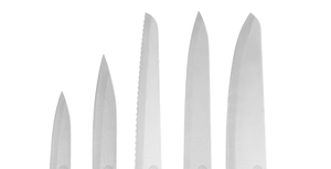 Contents: 1x MasterChef 5-piece knife set, Includes paring knife (9 cm), utility knife (12cm), carving knife (20cm), bread knife (20cm) and chef's knife (20cm), Material: Stainless steel.