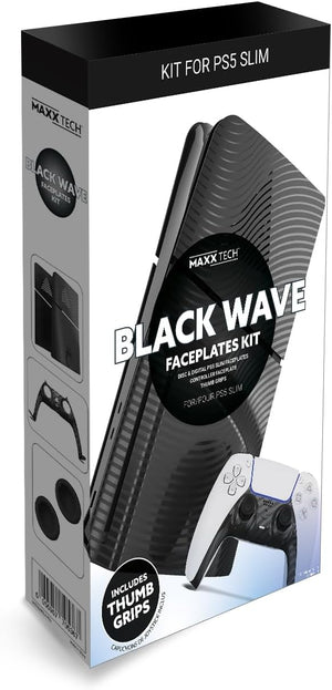 Maxx Tech PS5 Slim Faceplates Black Wave (5pcs) + Controller faceplate + 2 Thumb Grips
