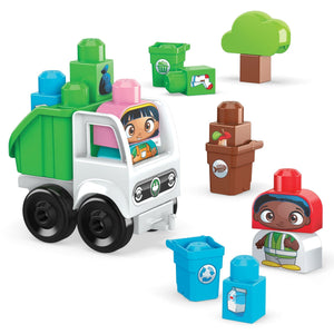 - Kids can build a rolling recycling toy truck, along with 2 character figurines, to create fun little adventures as they sort the compost, recycling and waste in the neighbourhood, matching them to the bins!