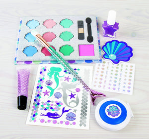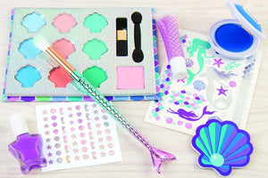 This tween mermaid themed cosmetic set will unleash your daughter creativity as a perfect introduction to makeup styling. Includes mermaid temporary tattoo stickers. The Mego mermaid make over helps young girls develop fine motor, visual, and self-actualization skills - all While having a blast doing their own mermaid makeup! This make over kit has everything your child needs to get started with cosmetics. Includes all the essentials for mermaid makeup styling, along with an instructional dream guide for inspiration