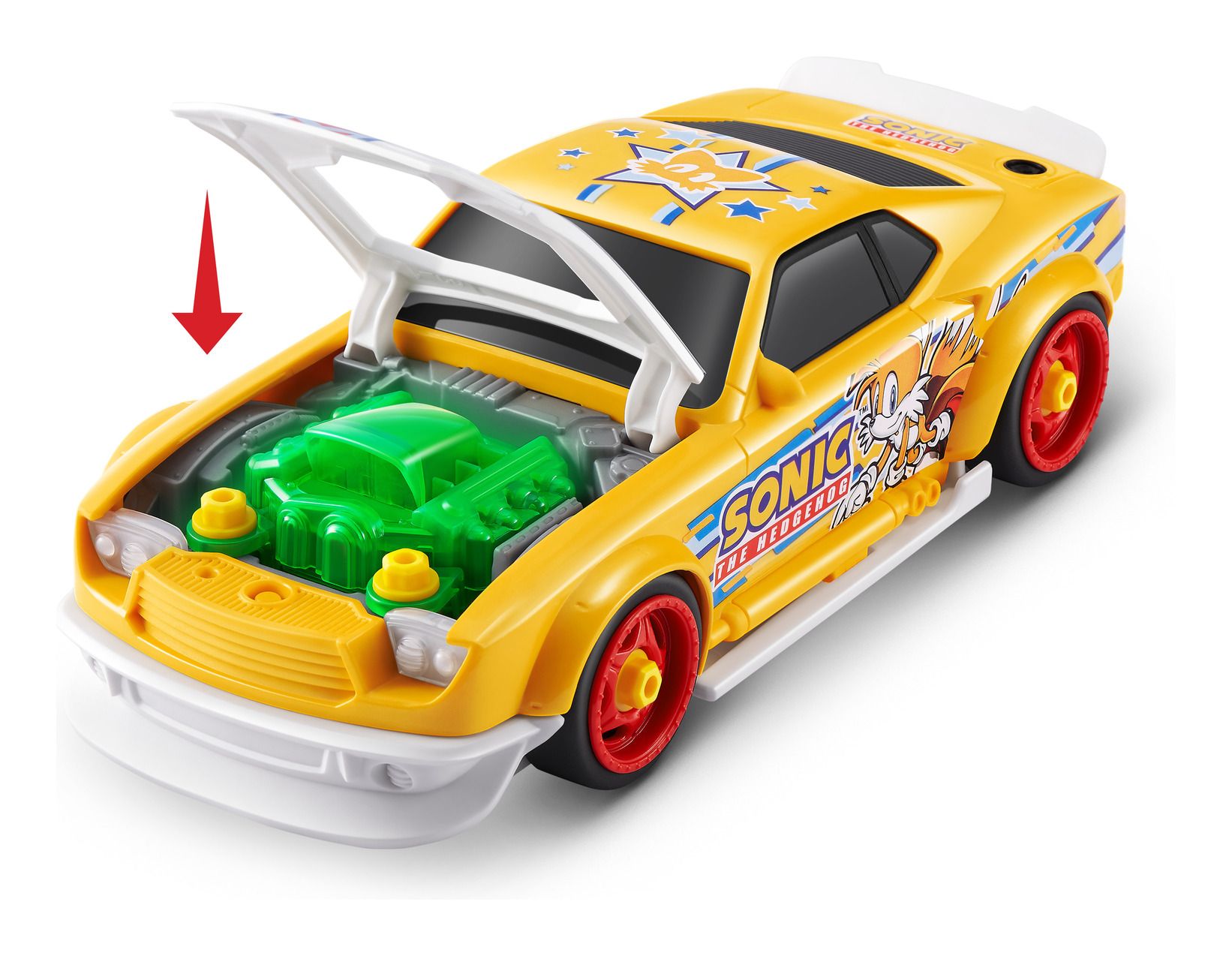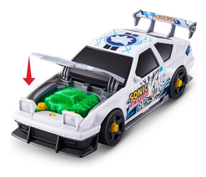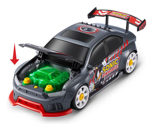 25+ Surprises inside: Break open the Helmet to discover all the parts to build your very own Sonic The Hedgehog Speed Hero, including some extra surprises! Build and customize: With 2x car bodies and stickers, you can build your own custom race car! Collect them all!: Each Sonic The Hedgehog Speed Hero comes with 2 unique car bodies. Collect all 3 to build and customize all 6 cars! Bring your Sonic The Hedgehog Speed Hero to life: Watch your Speed Hero roar to life with lights and sounds! Pack Inclusions: 2 Car main bodies, 1 Chassis, 2 Engine hoods, 2 Headlights, 2 Engine interiors, 2 Front bumpers, 1 Rear bumper, 4 Wheels, 4 Tires, 2 Wings, 1 Screwdriver, 6 Long screws, 3 Short screws, 1 Light & Sound engine, 2 Stickers, 1 Slime, 1 Instruction booklet.