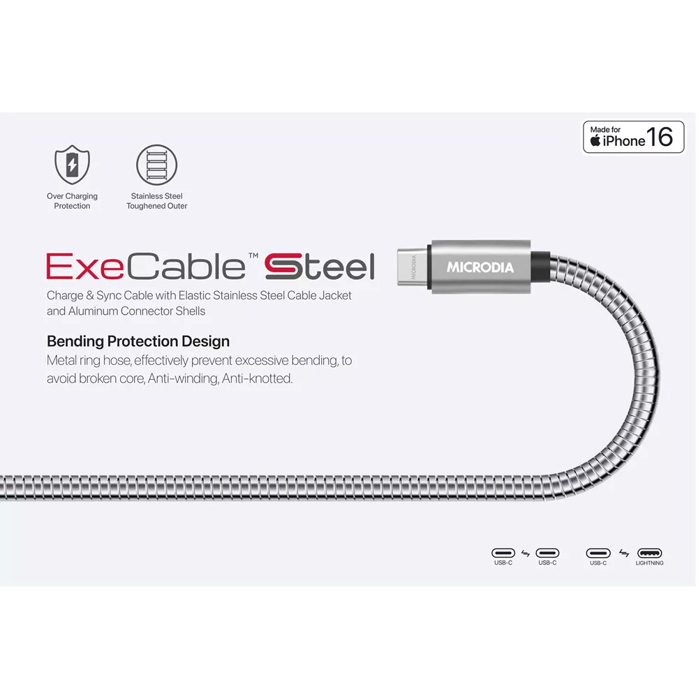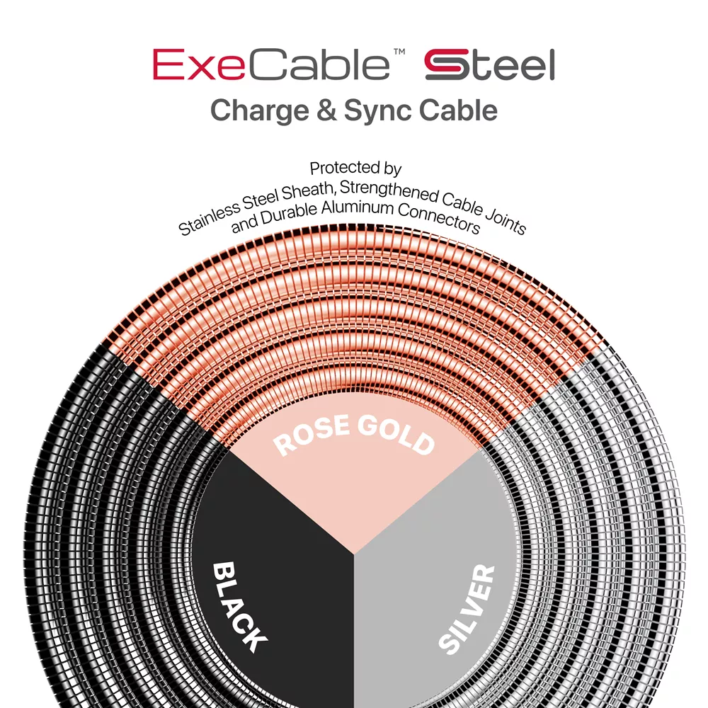 Crafted with an ultra-flexible stainless-steel jacket, the ExeCable Steel redefines strength without compromising flexibility. The premium construction ensures extra durability and resilience, making it resistant to fraying, tangling, and wear over time. Whether in your workspace, on the road, or at home, this cable stands up to daily use with effortless reliability.