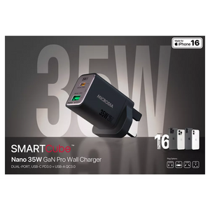 Microdia SmartCube Nano 35W USB-C & USB-A SmartAI PD Wall GaNPro Charger Plug Charcoal