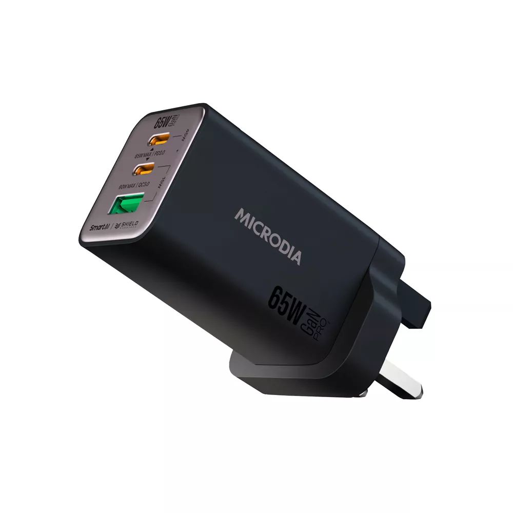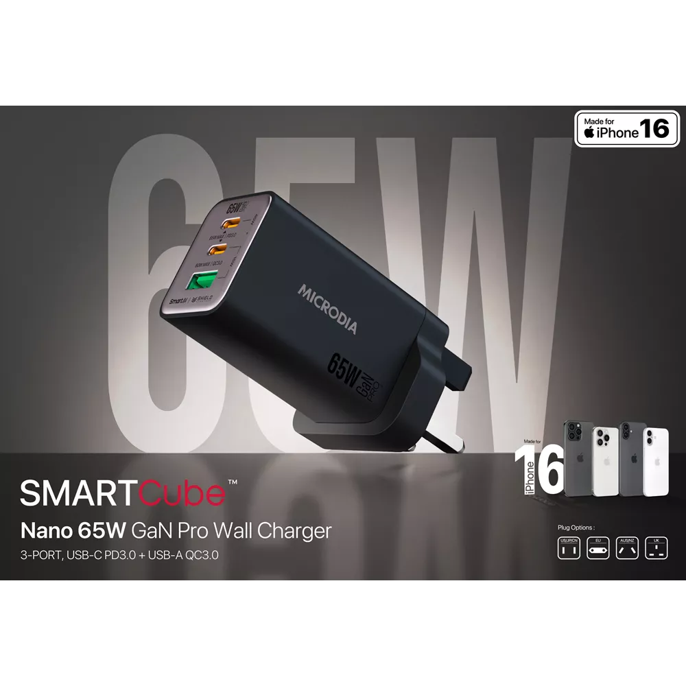Microdia SmartCube Nano 65W USB-C & USB-A SmartAI PD Wall GaNPro Charger Plug Charcoal